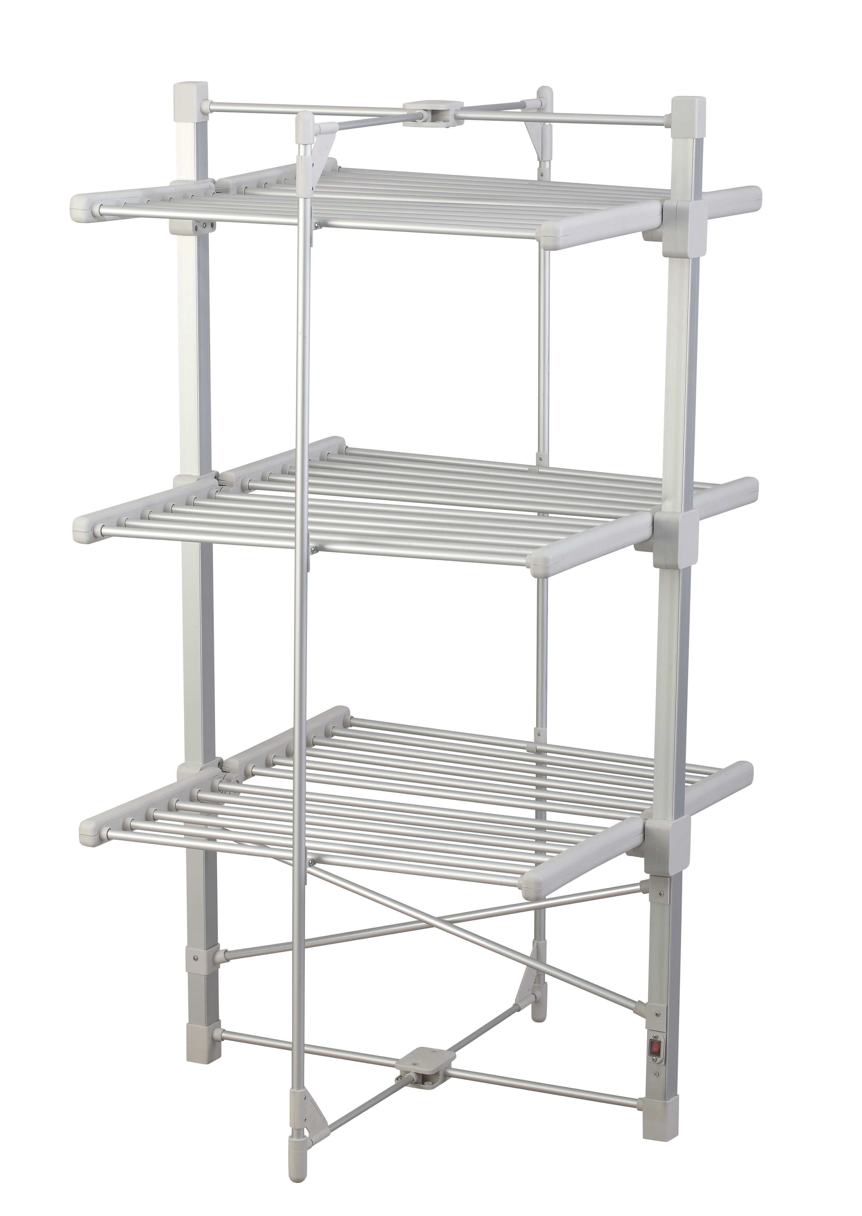 三層折疊電熱干衣架 Three-layer folding electric dryer 材質(zhì)Material:Space aluminum and PP plastics 太空鋁+PP塑料 功率Power:220V/330W 表面Surface:Silver Oxide 氧化銀 尺寸Size:780*720*1380mm 包裝Ctn size:740*110*1390mm